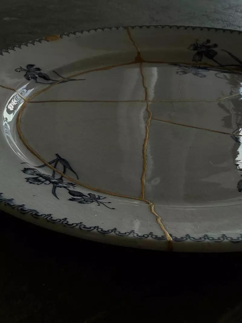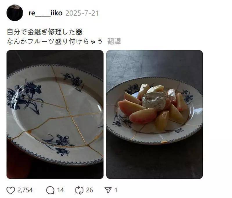 其实重新赋予摔碎的碗盘新使命的网友还不少,像这位网友就透过金漆修復已经破掉的盘子,牢不牢固我不太清楚,因为我不知道这么做对于物品的强韧度有没有增加?但是就美观上来说加了金漆修补之后,就把原本的盘子提升至更漂亮的感觉